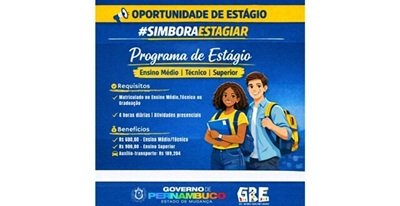 O maior programa de estágio de Pernambuco está com inscrições abertas! São mais de *26 mil vagas* para estudantes que buscam experiência prática e protagonismo.