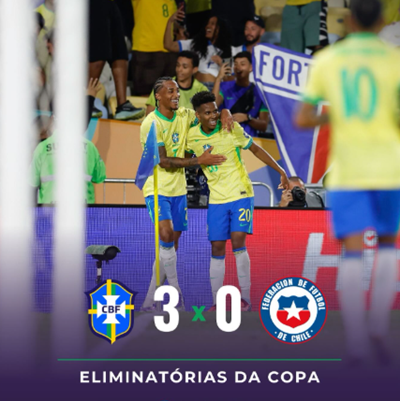 Na noite desta quinta-feira (4), o Brasil venceu o Chile por 3 a 0, em jogo válido pela 17ª rodada das Eliminatórias da Copa do Mundo, com gols de Estêvão, Lucas Paquetá e Bruno Guimarães. No Maracanã, a seleção brasileira se impôs, tomou as principais iniciativas desde o começo do jogo, marcou três vezes e venceu a seleção chilena.