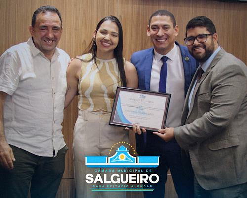 Em sua fala de agradecimento, Jéssica expressou gratidão pelo reconhecimento e relembrou suas origens. “Agradeço pela oportunidade de estar aqui e pelo reconhecimento que vocês me deram. É muito gratificante estar aqui com familiares, amigos e vereadores. Eu sou daqui, e por eu vou em São Paulo eu sempre falo de Salgueiro. As pessoas não conhecem, mas faço questão de mostrar e falar da nossa terra.”