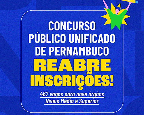 As inscrições do Concurso Público Unificado de Pernambuco foram reabertas e seguem até o dia 28 de novembro!