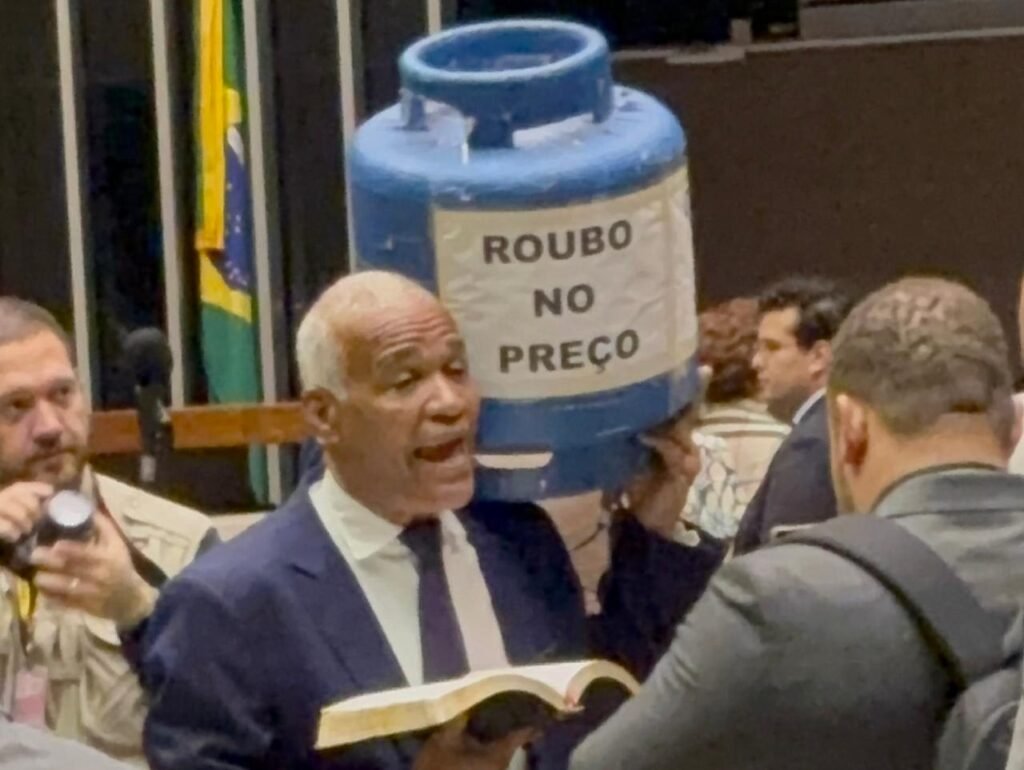 O deputado Pastor Sargento Isidório (Avante-BA) levou um botijão de gás vazio e uma bíblia nas mãos ao plenário da Câmara dos Deputados em protesto contra o preço do produto. No recipiente, estavam escritas as frases “Roubo no preço” e “Contra a máfia”.