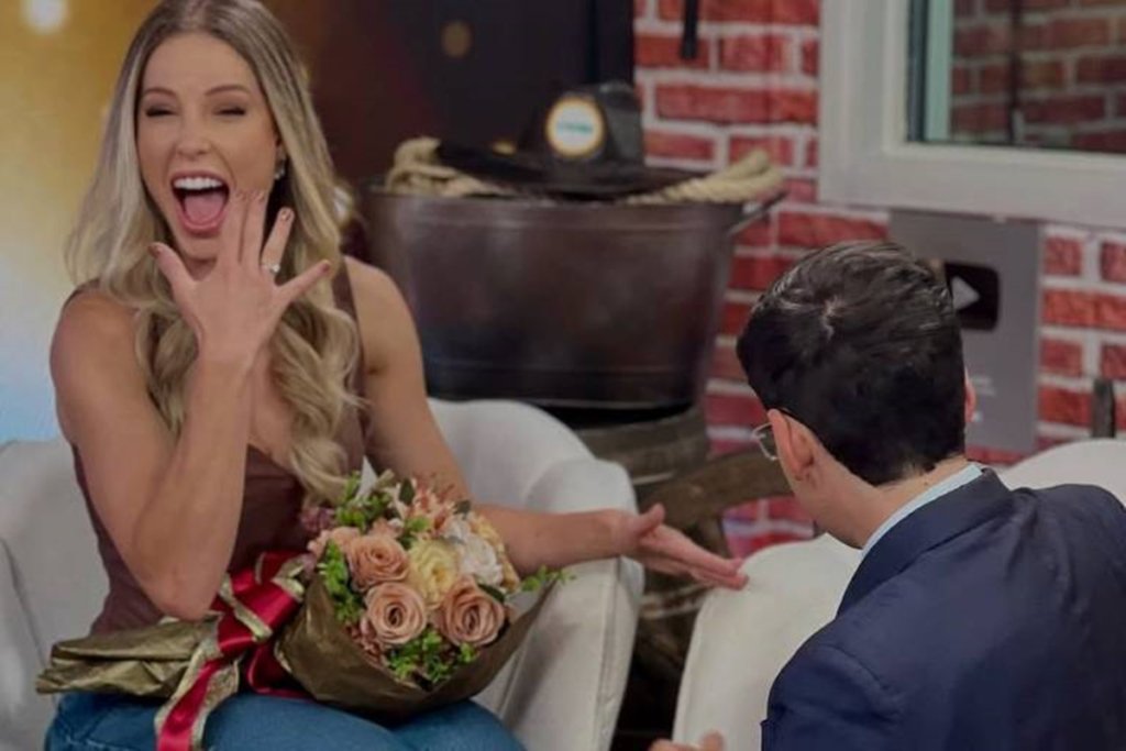 Dudu Camargo pede Saory Cardoso em namoro ao vivo e se declara