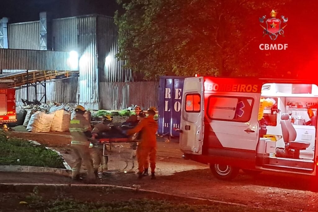 Um homem precisou ser socorrido após ficar preso em uma esteira para triagem de materiais recicláveis. O acidente aconteceu em uma empresa às margens da via L4 Sul.