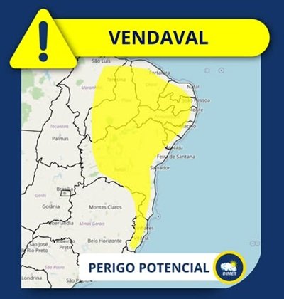 Nesta quinta-feira, 25, o Instituto Nacional de Meteorologia (Inmet) emitiu um alerta de ‘vendaval moderado’ em uma extensa área do território do Nordeste, incluindo o município de Salgueiro e diversos outros de Pernambuco. A previsão é válida até amanhã, 26.