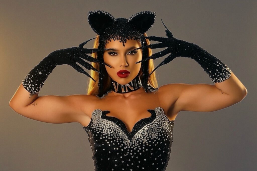 O look usado por Virginia foi inspirado na fantasia de onça-preta escolhida por Luma de Oliveira no desfile da Tradição em 1998. Na época, o figurino chamou atenção por trazer uma coleira com o nome de Eike Batista, então marido de Luma. Em 2026, a releitura manteve o acessório, mas com uma atualização: o nome estampado foi o de Vini Jr., atual namorado de Virginia.