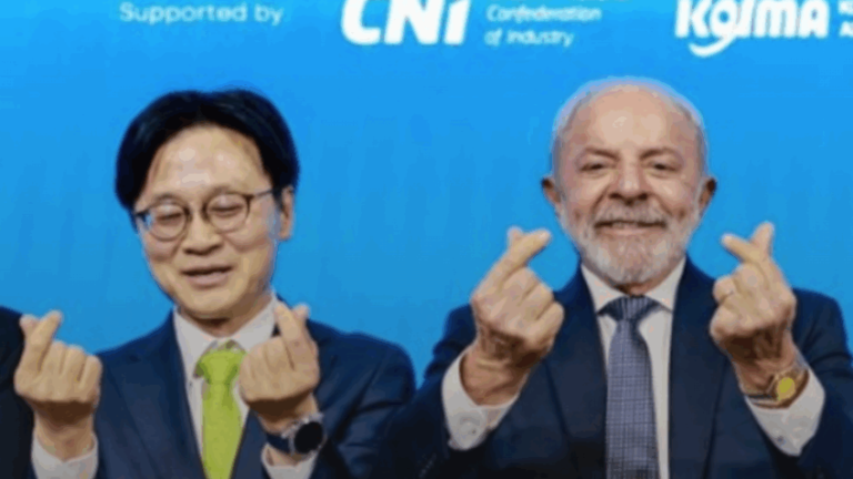O presidente Luiz Inácio Lula da Silva fez o gesto conhecido como "coração coreano" na segunda-feira (23.fev.2026) ao encerrar o Fórum Empresarial Coreia-Brasil, em Seul. O gesto, associado ao K-pop, foi uma demonstração de amizade entre os dois países durante o evento, onde o presidente sul-coreano, Lee Jae-myung, destacou a relação além da diplomacia.
