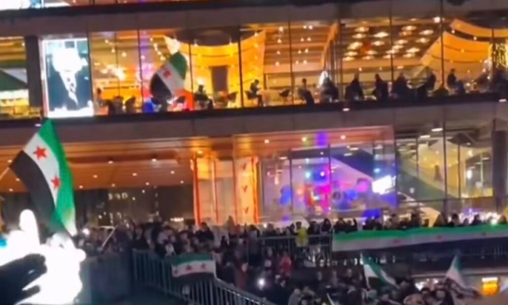 As imagens mostram centenas de pessoas num mercado de Natal, a desfilar acompanhadas de rufar de tambores, músicas, assobios e cânticos. Algumas erguem a atual bandeira da Síria, que à data, 8 de dezembro de 2024, representava a oposição ao regime, como explica a enciclopédia Britannica.