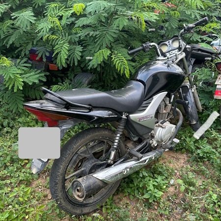 Moto apreendida durante a operação Necandi, com objetivo de intensificar o combate a homicídios em Serra Talhada e região. A ação foi desencadeada após investigações conduzidas pela equipe da 177ª Delegacia de Serra Talhada, que identificou a atuação de indivíduos ligados à prática de homicídios no município.