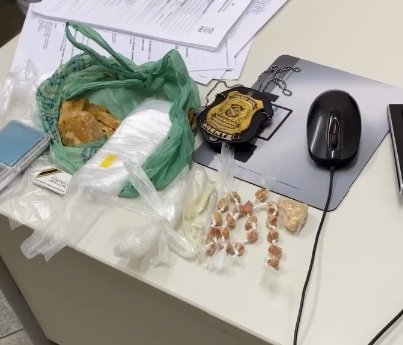 Os policiais revistaram o imóvel e localizaram 82,260 gramas de crack em pedras grandes, uma balança de precisão, sacos plásticos e lâminas usadas para cortar a droga. Na casa do outro envolvido, que tinha saído com a sacola, os agentes encontraram 31,776 gramas de crack (em pedra grande e porções) e dois usuários de droga. O suspeito ainda tentou se desfazer de objetos jogando pelo muro, mas os policiais encontraram.