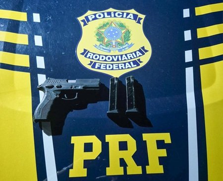 Uma pistola calibre 380 com 33 munições foi apreendida pela Polícia Rodoviária Federal (PRF) na semana passada, na BR-428, no município de Cabrobó.