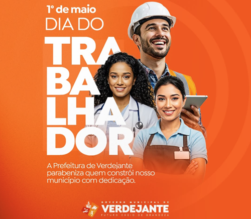 “Neste 1º de Maio, a Prefeitura de Verdejante rende homenagem a todos os trabalhadores e trabalhadoras que contribuem, com esforço diário, para o crescimento da nossa cidade. Sejam no campo, nas escolas, na saúde, no comércio, ou no serviço público, cada profissão tem seu valor e faz a diferença na construção de uma Verdejante mais justa e desenvolvida. Nosso reconhecimento e gratidão a todos que, com dedicação e coragem, ajudam a mover o município para frente.”