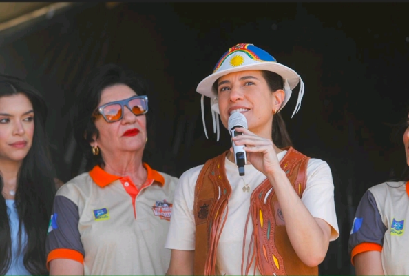 A chefe do Executivo estadual acompanhou a cerimônia a cavalo, ao lado de vaqueiros e vaqueiras que, todos os anos, lotam o Parque de Exposições da cidade.