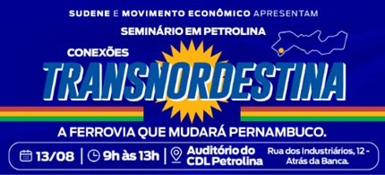 Iniciativa conjunta do portal Movimento Econômico e Sudene, o seminário “Conexões Transnordestina – A Ferrovia que Mudará Pernambuco” chega a Petrolina nessa quarta-feira, 13, após a estreia em Salgueiro no dia 24 de julho. O encontro acontecerá no auditório da Câmara de Dirigentes Lojistas (CDL), das 9h às 13h, com objetivo de estimular o debate sobre os impactos econômicos e logísticos do ramal Salgueiro-Porto de Suape da Ferrovia Transnordestina.