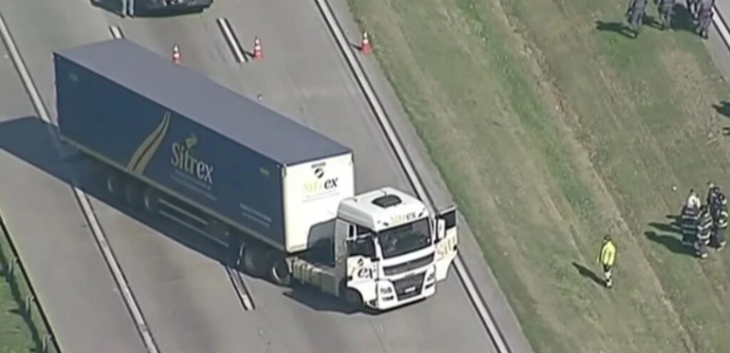 “O motorista foi sequestrado. (Criminosos) mandaram o motorista atravessar o caminhão (na via). E ele está amarrado na cabine a um artefato caseiro. Estamos esperando a chegada do Grupo de Ações Táticas Especiais (GATE)”, disse a concessionária. Conforme informações iniciais da SPMar, ele foi abordado e levado por três criminosos, que posteriormente, após fazê-lo fugiram do local.