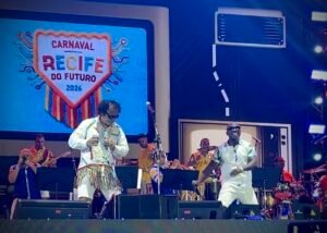 Seu Jorge assume o palco do Marco Zero com um repertório marcado pelo samba pop que consolidou sua carreira. Nesta segunda-feira (16), o cantor apresenta sucessos como “Burguesinha” e “Mina do Condomínio”, acompanhados pelo público do início ao fim.