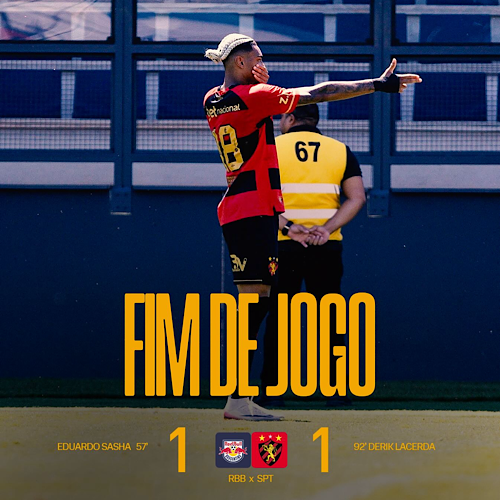 A partida teve momentos de apreensão para os rubro-negros. O Bragantino abriu o placar com Eduardo Sasha, de pênalti, aos 11 minutos do segundo tempo. Mais uma vez, o Sport encontrou dificuldades para reagir e só conseguiu buscar o empate nos acréscimos, com gol de Derik Lacerda, aos 47 minutos.