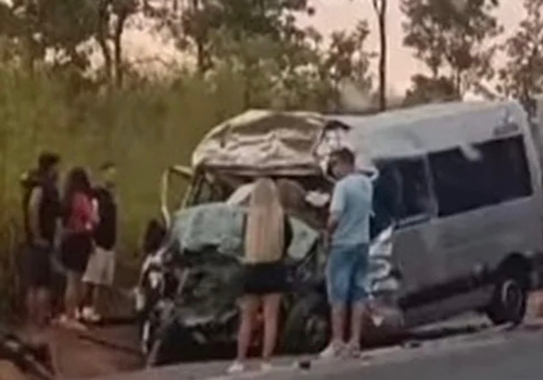 De acordo com informações preliminares, a van, que transportava 13 ocupantes rumo a Brasília, bateu de frente com uma Fiat Toro, onde estavam quatro pessoas.