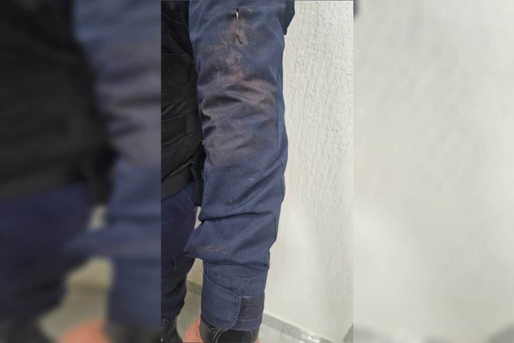 • Durante a intervenção, o agressor saiu do cômodo empunhando a faca e desferiu golpes contra um dos policiais, ferindo um sargento no braço esquerdo.