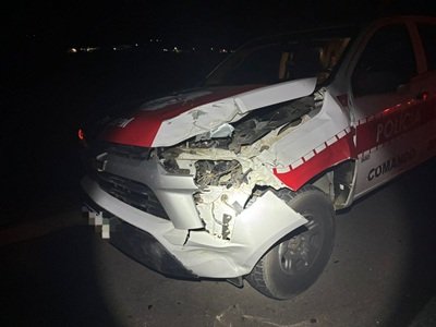 Na noite desta quarta-feira (7) uma viatura da Polícia Militar do estado da Paraíba (PMPB), modelo S10, colidiu contra um animal solto no meio da BR-232 em Serra Talhada. O acidente ocorreu por volta das 21h30, na altura do KM-415.